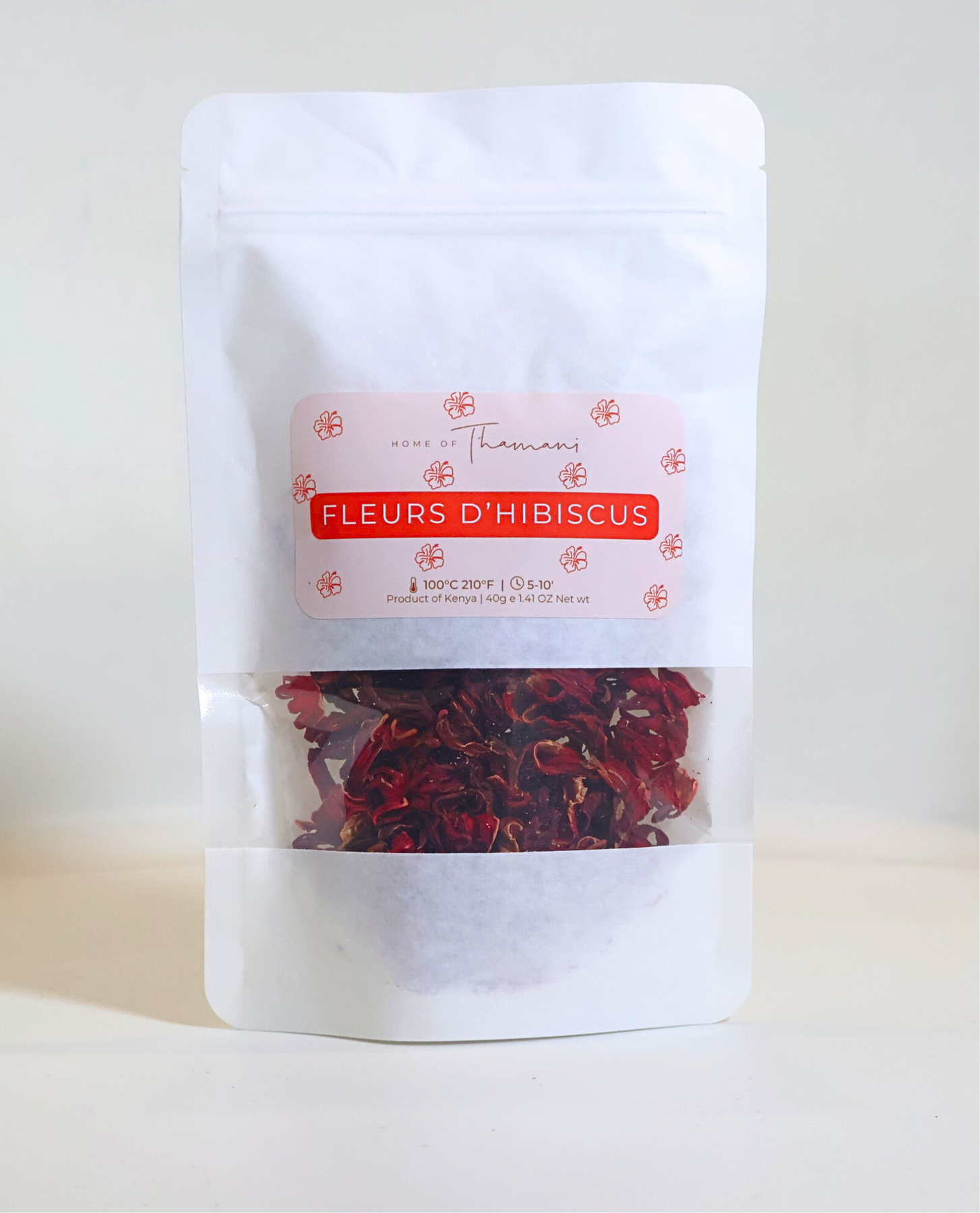 Fleurs d’Hibiscus Pures du Kenya (40g) : Récoltées avec soin et séchées naturellement pour préserver leur couleur éclatante et leur saveur riche.