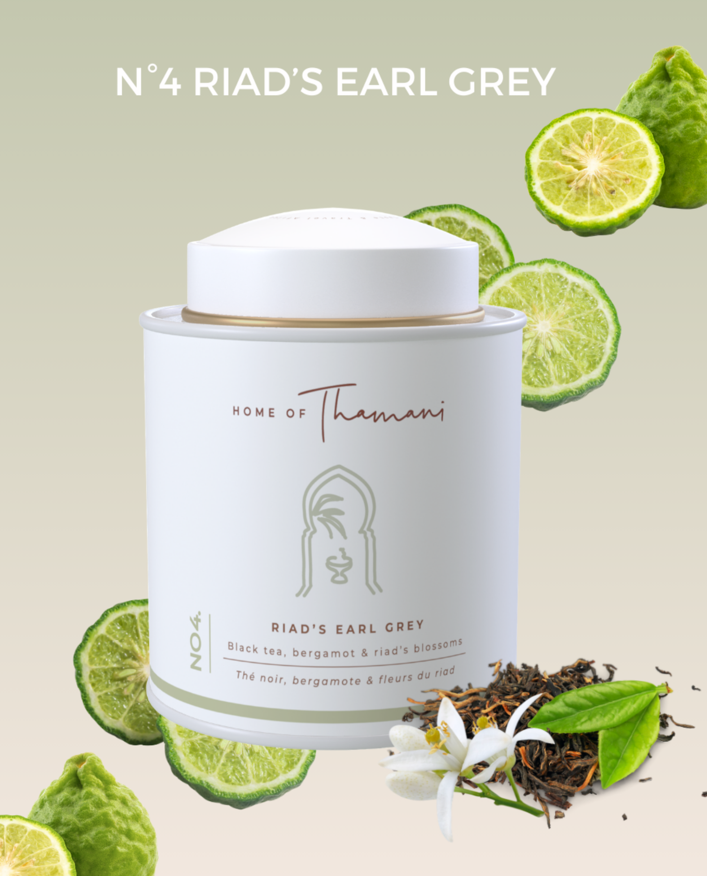 Inspiré par l'élégance des riads et de leurs jardins parfumés, Riad’s Earl Grey marie à la perfection le thé noir audacieux avec les notes vivantes de bergamote, emblème de la Méditerranée. Infusé avec des fleurs d’oranger et de la verveine, cultivées dans les oasis marocaines, ce mélange unique apporte une touche florale et apaisante à votre tasse.